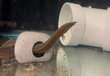 Activity: Fire Eels are primarily nocturnal, becoming more active during nighttime hours. They are known to burrow into the substrate, often leaving only their heads visible.
