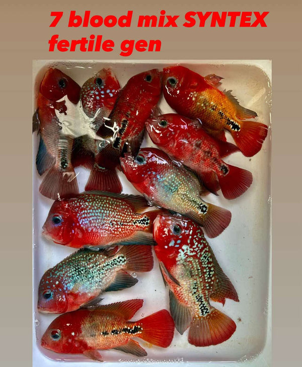 The SynTex Vieja Hybrid—sometimes marketed as “7 Bloods Vieja” or simply “7 Bloods Vieja (Vieja ×)”—is a selective‑bred Central American cichlid cross involving the genus Vieja (often Vieja melanurus / synspilum) and other hybrids. Upscale Aquatics+1