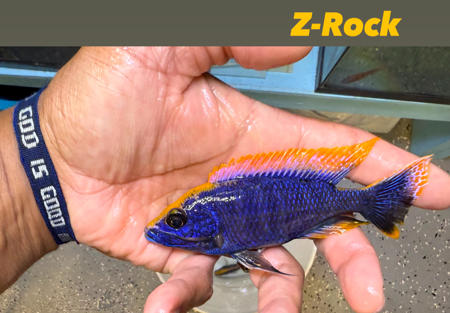 The Z-Rock Cichlid, also known as the Sulfur-Head Hap or Otopharynx lithobates, is a striking African cichlid from Lake Malawi. It is famous for its deep blue body and bright yellow head stripe, making it a standout species in any Malawi cichlid tank.